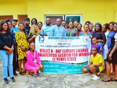 As climate change threatens life and safety of livelihoods, especially for women, Konesens Development - Nigeria in partnership with the Center for Faith and Community Development held its second climate change awareness session for women on the 26th of July, 2024 at Hudco Quarters Makurdi. There were twenty seven (27) attendees from various works of life (teachers, famers, social workers, environmental specialist etc.)